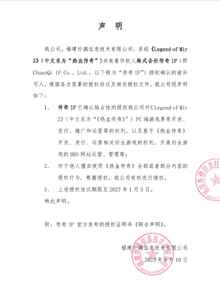 202404-05关于传奇IP已确认对k8凯发授权有效之声明